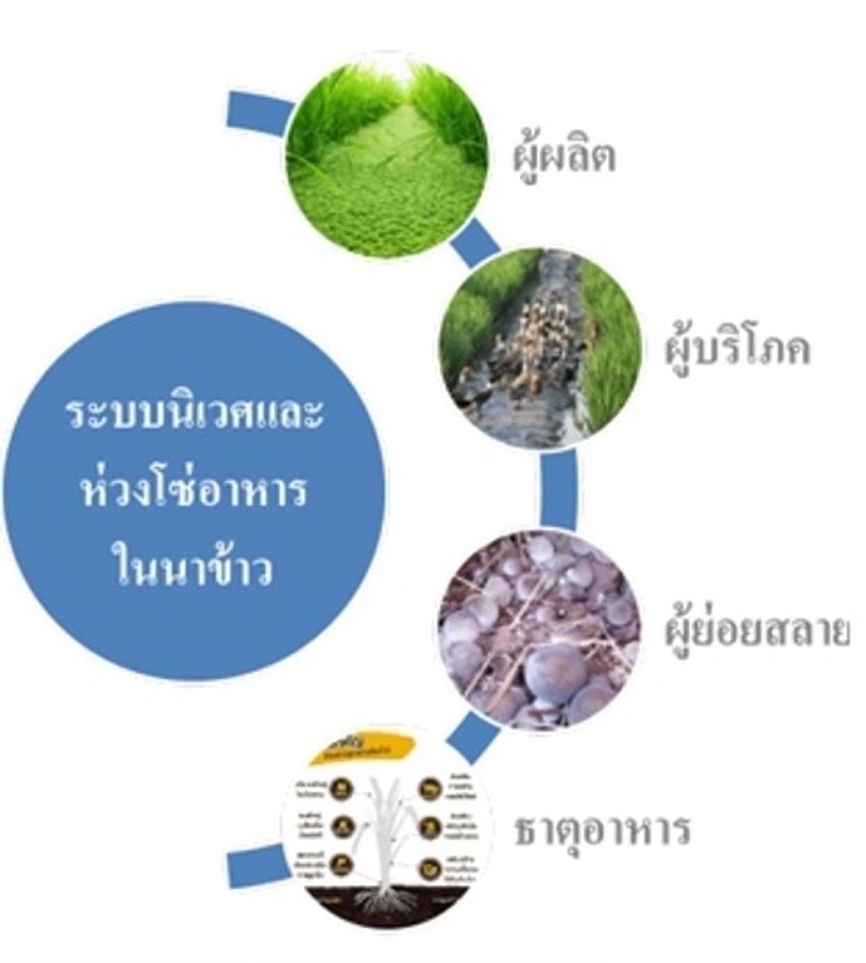 ระบบนิเวศในนาข้าวคือความสัมพันธ์ระหว่างสิ่งมีชีวิต สิ่งมีชีวิต และสิ่งแวดล้อมภายในนาข้าว ผู้บริโภคและผู้ย่อยสลายเป็นไปในทางเดียวหรือส่งสารอาหารซึ่งกันและกันตลอดจนการหมุนเวียนของสารอาหาร แร่ธาตุ และการถ่ายโอนพลังงาน (Institute of Biodiversity, 2022)